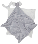 100% polyester. Soft plush double layer blanket. White bunny has white blanket. Grey elephant has grey blanket. Zip access for decoration. Suitable for embroidery, print and sublimation.